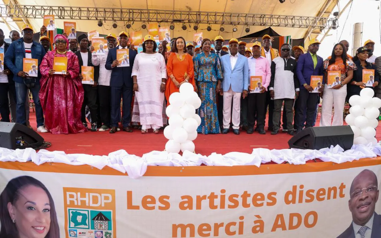 La direction centrale de campagne dédiée au monde culturel et artistique du candidat du RHDP, Alassane Ouattara, a dévoilé le 08 octobre 2025 au Palais de la Culture Bernard B. Dadié de Treichville ses équipes. Portée par les ministres Françoise Remarck et Siandou Fofana, cette direction centrale de campagne comprend plusieurs grandes figures du monde culturel et artistique. Ceux-ci auront pour mission de prôner la paix durant cette campagne tout en mettant en lumière les grandes réalisations du candidat du RHDP. A cette occasion, la présidente du Sénat, Kandia Camara, a salué l’engagement des artistes ivoiriens, ces ambassadeurs de la paix, de la cohésion sociale et du vivre-ensemble;. Elle a par ailleurs encouragé ces acteurs culturels et artistiques à continuer d’utiliser leur art comme un puissant instrument d’unité nationale et de développement, au service d’une Côte d’Ivoire forte, et plus rassemblée.