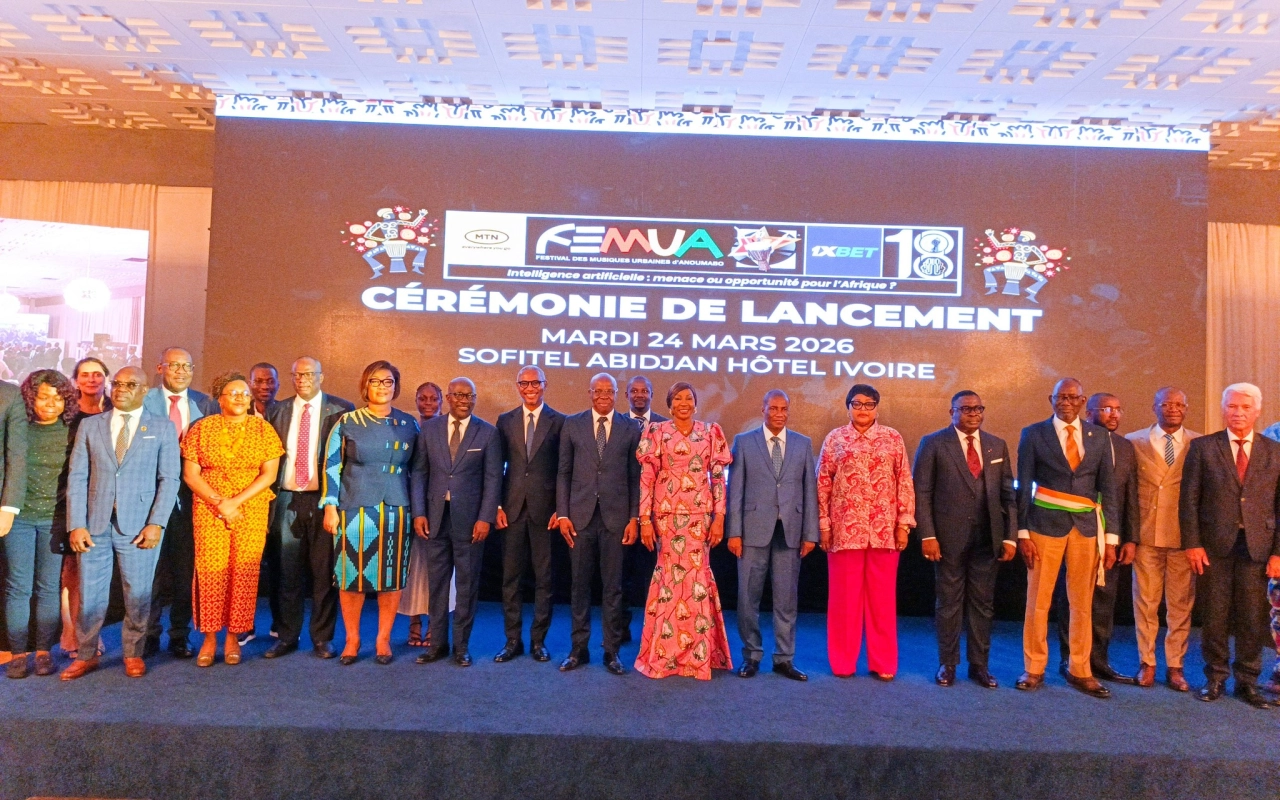 La 18ème édition du Festival des musiques urbaines d’Anoumabo (FEMUA) a été officiellement lancée le mardi 24 mars 2026 au Sofitel Hôtel Ivoire d'Abidjan en présence de plusieurs personnalités politiques, gouvernementales, administratives, culturelles, diplomatiques et coutumières. Avec pour marraine Kandia Camara, présidente du Sénat, cette 18ème édition qui se tiendra du 28 avril au 03 mai 2026 a pour pays invité d'honneur le Gabon et pour ville décentralisée Dimbokro. Le FEMUA 2026 est placé sous le thème « Intelligence artificielle : menace ou opportunité pour l’Afrique ? ». Youssou N’Dour (Sénégal) Meiway (Côte d’Ivoire), Fatoumata Diawara (Mali), Dena Mwana (République démocratique du Congo), Black M (France / Guinée), Roseline Layo (Côte d’Ivoire), Didi B (Côte d’Ivoire), Les Garagistes (Côte d’Ivoire), L’Oiseau Rare (Gabon) et Kedjevara (Côte d’Ivoire) sont les artistes à l'honneur.