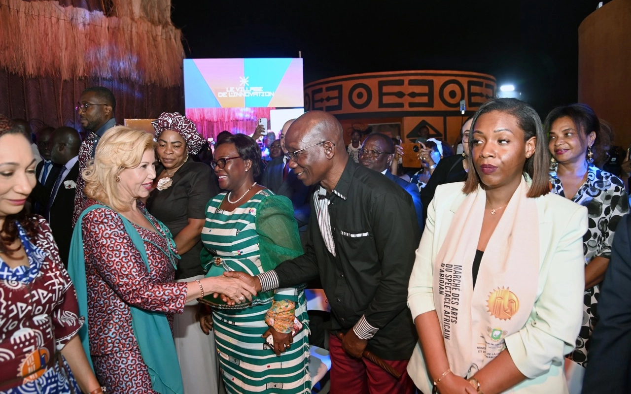 La Première Dame de Côte d’Ivoire, Dominique Ouattara a officiellement ouvert le village de l’innovation de la 14ᵉ édition du Marché des arts du spectacle africain d’Abidjan (MASA), lundi 13 avril 2026 au Palais de la Culture Bernard B. Dadié de Treichville. Ce village de l’innovation, à en croire ses initiateurs se veut un espace inédit faisant le pont entre la tradition africaine et les nouvelles technologies. A l’occasion de cette cérémonie qui a réuni d’importantes personnalités, dont la secrétaire générale de l’Organisation internationale de la Francophonie (OIF), Louise Mushikiwabo, ainsi que plusieurs membres du gouvernement, dont la ministre de la Culture et de la Francophonie, Françoise Remarck, et le ministre de la Transition numérique et de la Digitalisation, Djibril Ouattara, parrain de l’événement, la Première Dame Dominique Ouattara a salué le travail remarquable de la ministre Françoise Remarck et de l’ensemble des acteurs des Industries culturelles et créatives. Elle s’est également réjouie de la qualité de la programmation du MASA, notamment celle du Village de l’innovation qui selon elle constitue une source de fierté nationale et un signal positif pour le rayonnement du continent africain. Aux innovateurs, start-up et créateurs, le ministre Djibril Ouattara a rappelé que cet espace a été conçu pour valoriser leur génie créatif non sans les encourager à croire en leur potentiel. Un défilé rendant hommage aux créateurs a mis fin à la cérémonie.